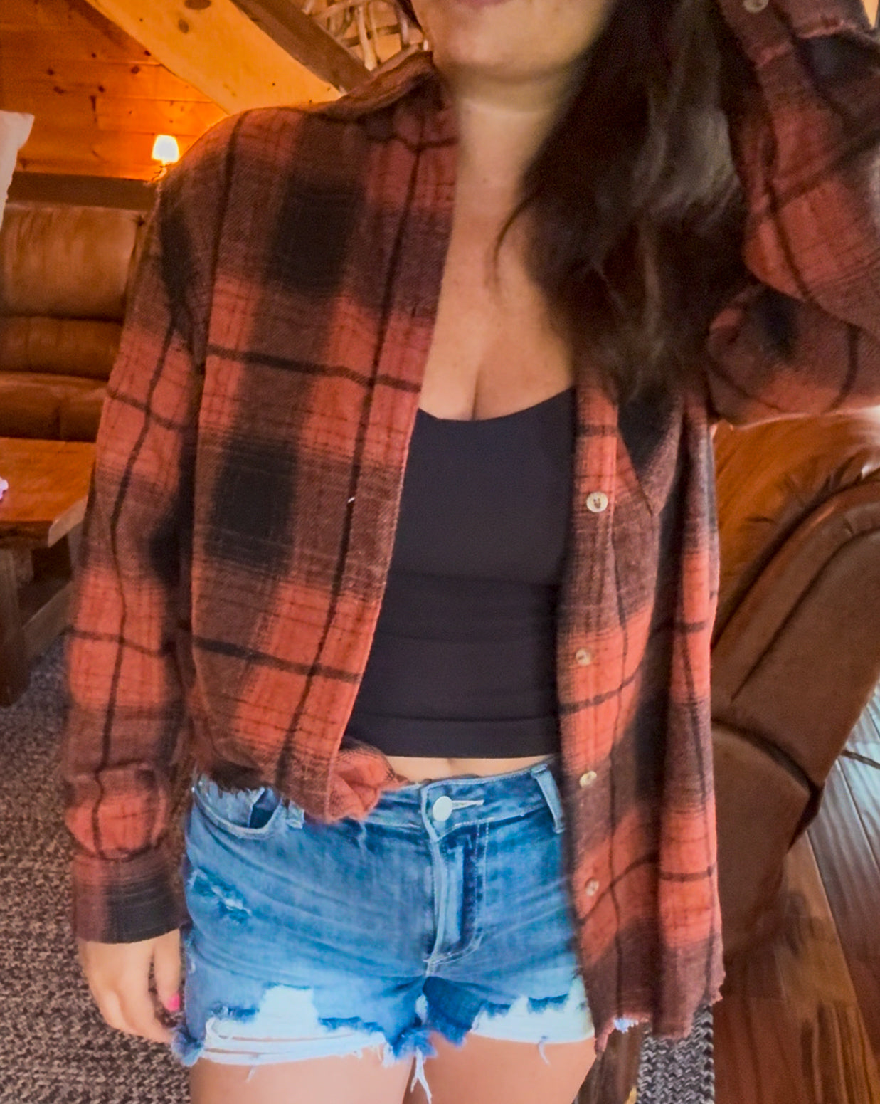 Cozy up for fall in this bold mineral-washed button-down, featuring a mixed flannel design, raw edges, and a chest pocket. Thicker than your average plaid, it’s the perfect layering piece for crisp autumn days—easy to pair with your favorite fall tops and jeans.