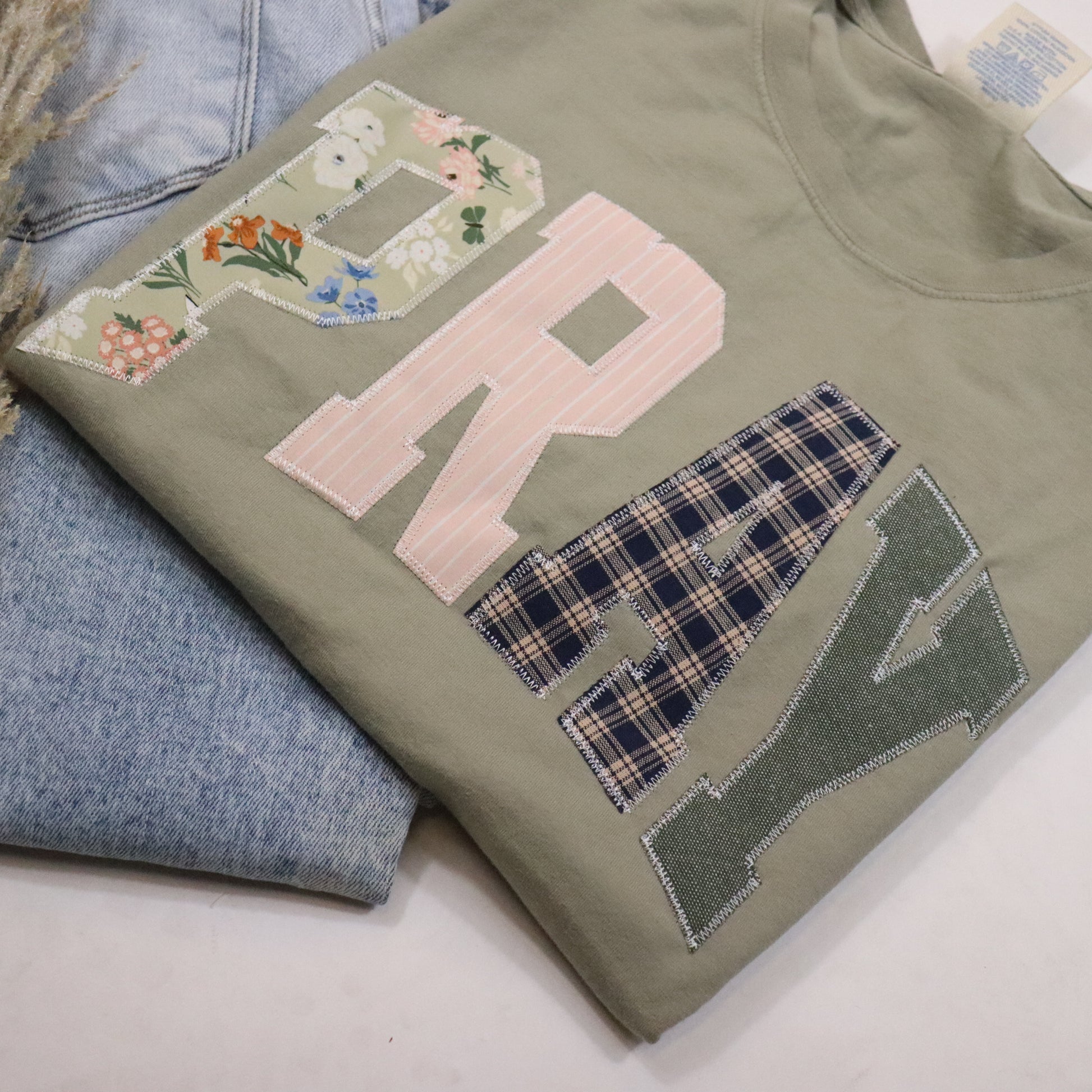 Say a little prayer in style! The shirt features a gorgeous design created with handmade applique embroidery and can be styled so many ways! The colors and design make it the perfect shirt for Easter! This tee will make you stand out with its unique style.